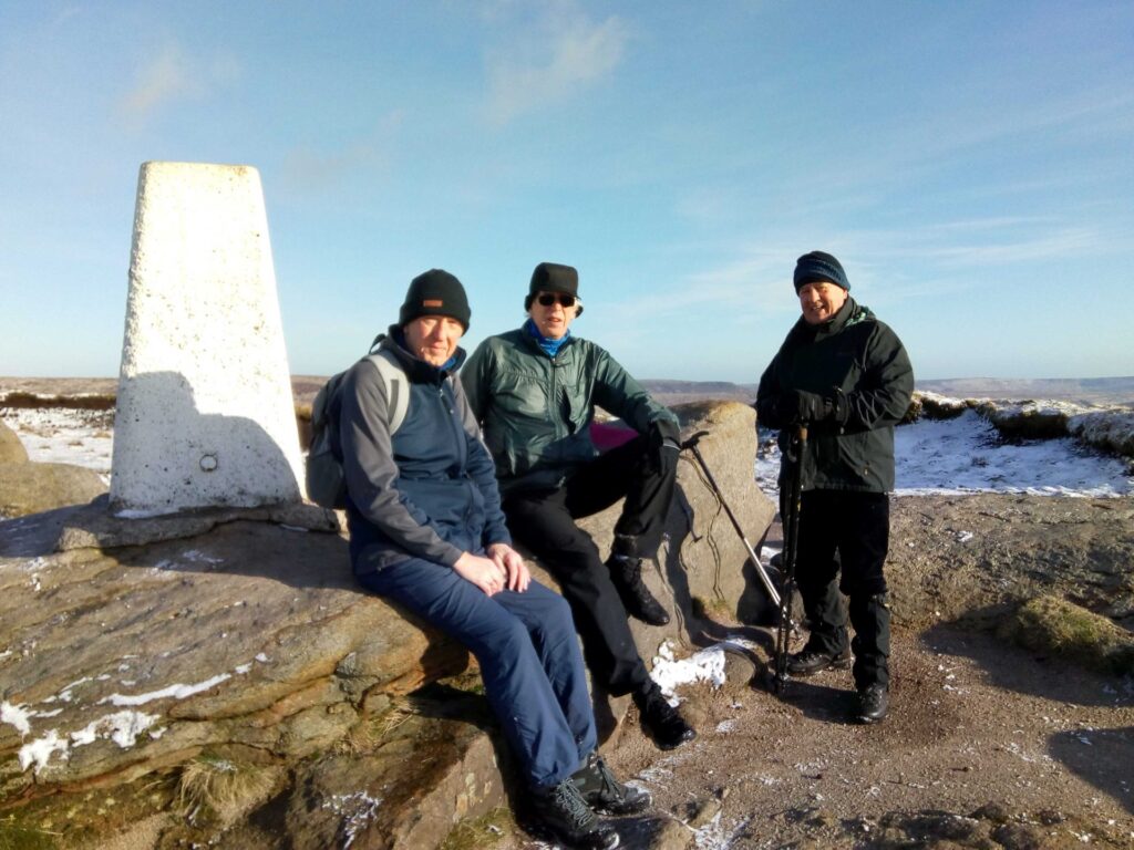 8 of us enjoyed a very pleasant walk in early spring sunshine from Little Hayfield to the Lantern Pike where we had a quick break sheltering from the North East wind, and then back to Glossop via Plainsteads and Lees Hall. 6 miles, details below